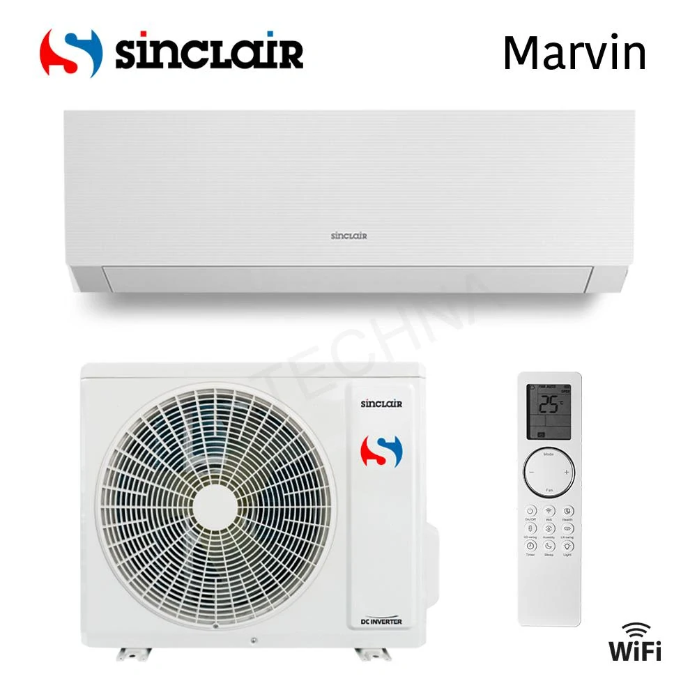 Jedinice serije MARVIN nude najvišu razinu opremljenosti, a zahvaljujući dizajnu usmjerenom na čiste geometrijske oblike, spadaju u sam vrh ponude zidnih klima uređaja SINCLAIR. Standardna oprema uključuje, uz uobičajene funkcije (Wi-Fi, pomicanje lamela u svim smjerovima, plazma generator, kontakt za blokadu rada, mogućnost spajanja zidnog upravljača i drugo), tu je i UV-C lampa za još veću kvalitetu zraka.