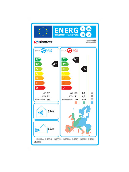 | Energetski razred | Hlađenje / Grijanje (A, W, C) * | A++ / (A+ / A+++ / -) | – |